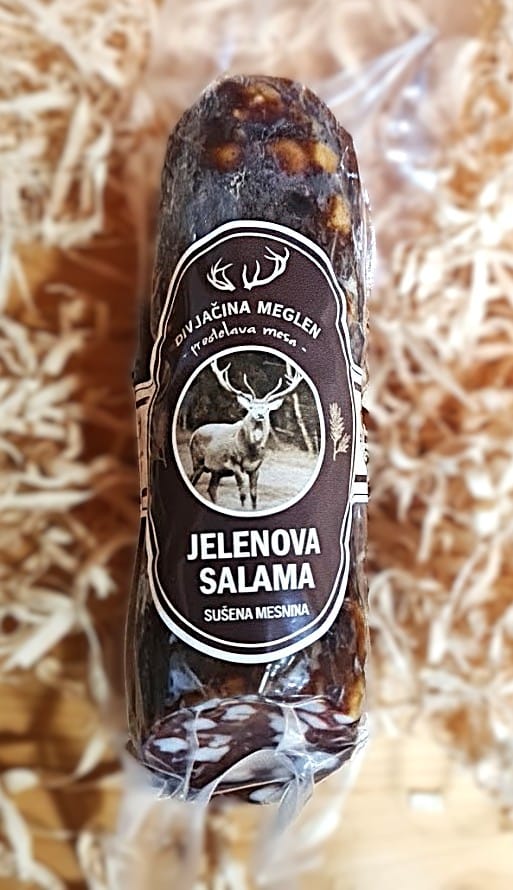 Sestavine: meso jelena 70%, svinjsko trdno mastno tkivo 20%, svinjsko meso 10%, kuhinjska sol 1.3%, nitritna sol 3%, črni poper 0.2%, česen 0.3%, brinove jagode 0.2%, muškatni oreh 0.2%, dekstroza, sladkor, askorbinska kislina. Lahko vsebuje ostanke streliva.