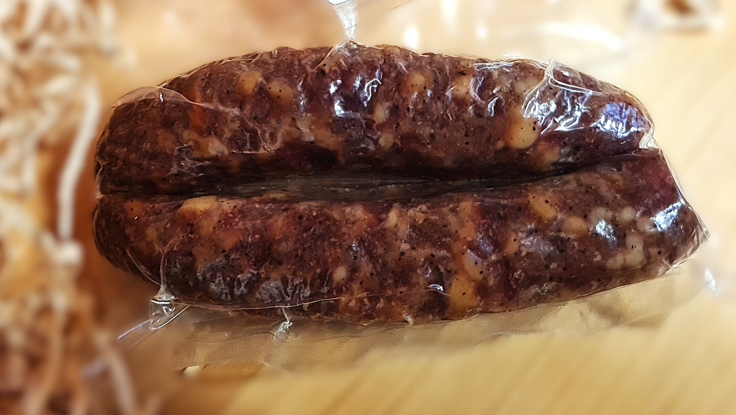 Sestavine: svinjsko meso, svinjsko mastno tkivo, kuhinjska sol, nitritna sol, začimbe: česen, črni poper, remal extra, muškatni oreh